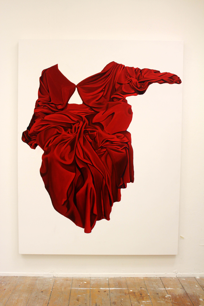 Self-portrait series show a variety of images depicting the artist draped in fabric commonly found in history paintings. Therefore she is both the artist and model, taking control of the female figure and how it is to be displayed (please see the 'Degree Show' page on the official website for more information on the installation of this series).